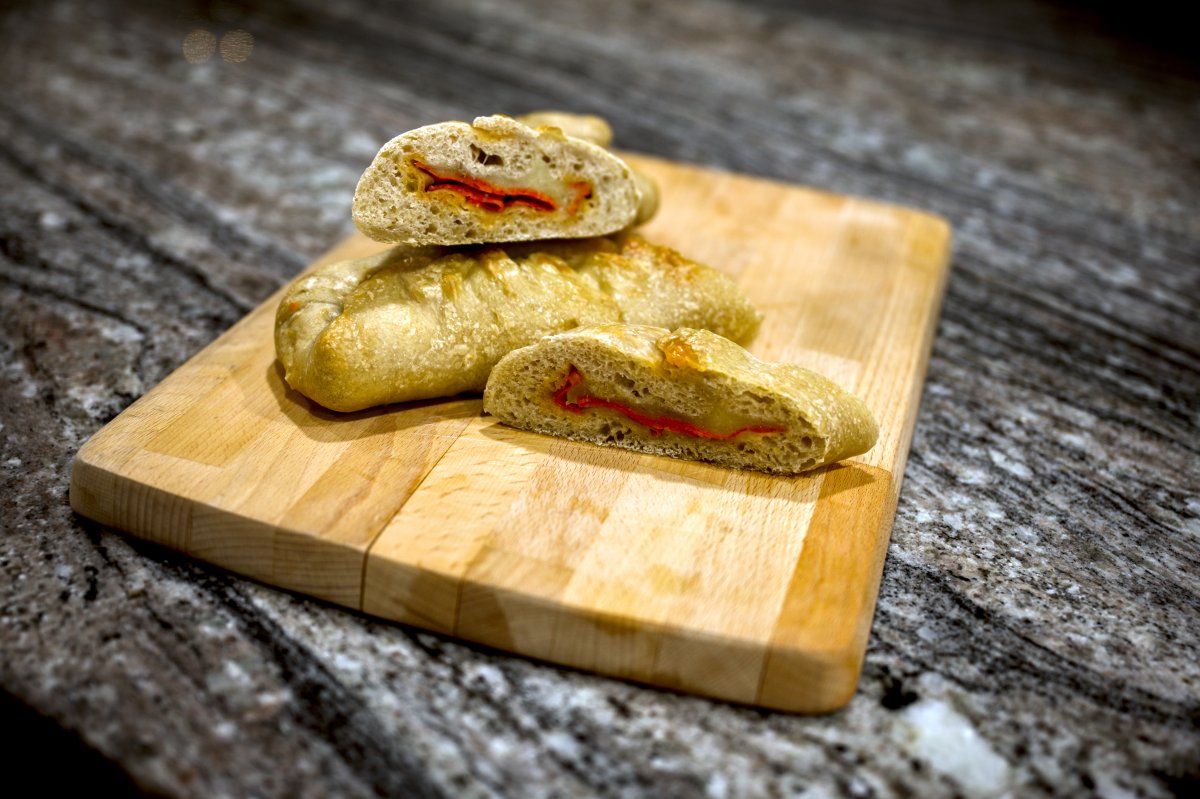 4Fold the dough over the provolone and pepperoni
